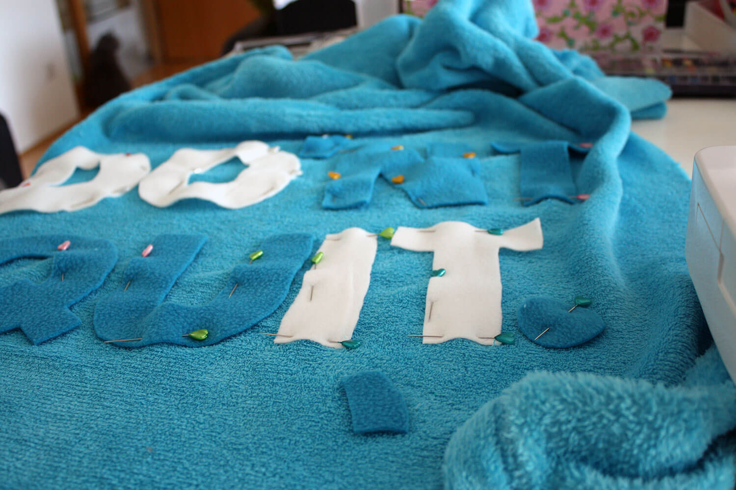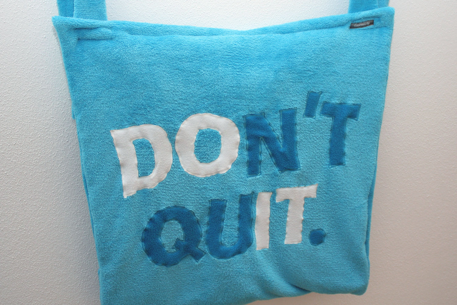 Wir haben seit kurzem eine Klimmzugstange an der Wand. Allerdings hat sie sich als „nicht knie-schonend“ erwiesen. :) Kennt ihr das Problem? Grund dafür ist die sehr rau geputzte Wand, an der sie angebracht ist. Es musste also eine praktische und vor allem schöne Lösung her – ein Fleece-Kissen als Puffer. Passend dazu ist auf dem Kissen ein schöner und animierender Spruch der Freeletics Atlethen in einem engen Zickzackstich angebracht: Dont‘ quit. Ein sehr schönes Wortspiel.