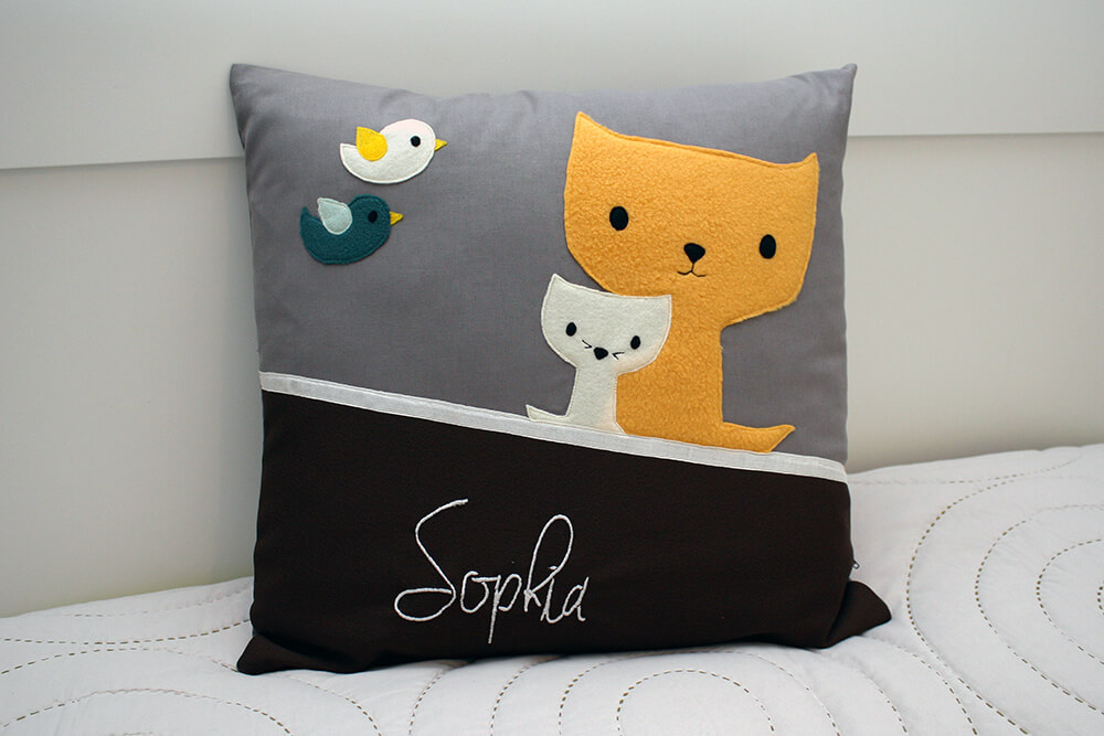 Das süße "Katzen-Kuschelkissen von Emina" durfte ich nun in neuer Farbgebung für Sophia nähen. Es ist irgendwie zu einem meiner Lieblingskissen geworden.