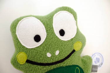 ​Nachdem es schon mal zwei Frösche aus grünem kuscheligem Fleece als Sofakissen von mir gab, gibt es nun auch ein kuschelig weiches Körnerkissen in Froschform. Ganz individuell für Elisabeth.