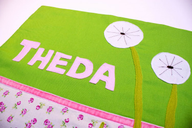 Nun darf sich Theda etwas wünschen, denn sie hat dieses tolle Kissen in frischen Frühlingsfarben geschenkt bekommen: