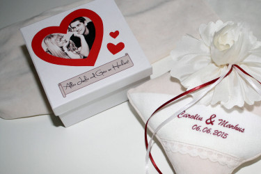 Anfang Juni stand die Hochzeit von Freunden vor der Tür, für welche ich ein Ringkissen vorbereitet habe. Zur Ringübergabe sollte es etwas ganz Besonderes und Individuelles sein. Vor allem auch, weil wir selbst nicht bei der Hochzeit dabei sein konnten und so mit dem Ringkissen dennoch einen schönen Beitrag leisten wollten.