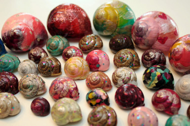 Seitdem musste jedes Schneckenhaus, das wir unterwegs gesehen haben, egal ob groß oder klein, mit nach Hause genommen werden, um es farbenfroh anzumalen.